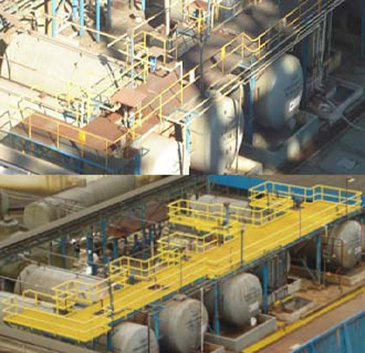 2006: Suministro, prefabricación y montaje de plataformas, barandales tuberías, válvulas, rejillas y pisos en planta de sosa cáustica